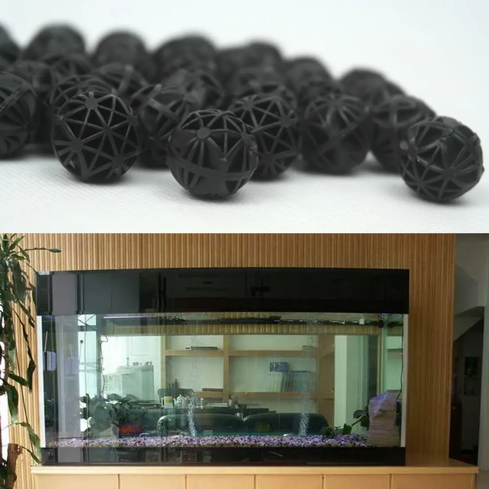 100 штук упак. 18 мм биологические био шары аквариумные рыбки влажные/сухие канистры фильтр Медиа черные аквариумы аксессуары