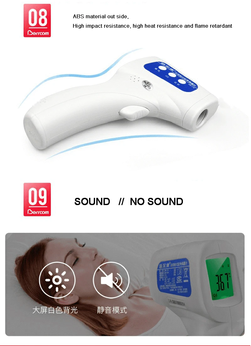 Цена очень хорошая. Этот бренд является наиболее используемым продуктом в Китае во время профилактики заболеваний. Бесконтактный инфракрасный термометр человека специально разработан для получения температуры человеческого тела, независимо от комнатной температуры. В зависимости от типа и толщины кожи могут быть различия в температуре. Когда температура в помещении значительно отличается, инфракрасный термометр человека должен быть помещен в помещении в течение 10-15 минут перед использованием. Цифровой ЖК-дисплей с подсветкой, легкий и портативный для использования. Встроенный лазерный указатель, точное Бесконтактное инфракрасное измерение. 2 единицы измерения температуры: Фаренгейт или Цельсия, длительное нажатие «MODE» более 3 с. Выбор режимов измерения для различных потребностей удобно. Измерение температуры тела: направляется к лбу на расстоянии 5-15 см. Различные цвета подсветки для различных температурных диапазонов в режиме тела. Измерение температуры объекта: измерение температуры поверхности объекта, температуры воды для детской ванны или температуры молока и т. д. Автоматический выбор диапазона и разрешение дисплея 0,1 °C/0,1 °F. Функция автоматического удержания данных и функция автоматического отключения питания. Выбор зуммера; Установите значение будильника (значение будильника по умолчанию составляет 38 °C/100,4 °F). Запоминание последних 32 групп данных измерений. Описание цвета подсветки (только режим корпуса): <32 °C: красная подсветка: отображается символ "LO";