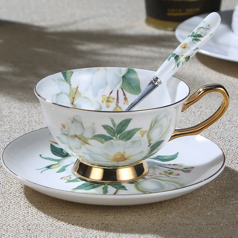 Европейский кофейный набор Camellia Bone, британский фарфоровый чайный набор, керамический горшок, сливки, сахарная чаша, чайная чашка