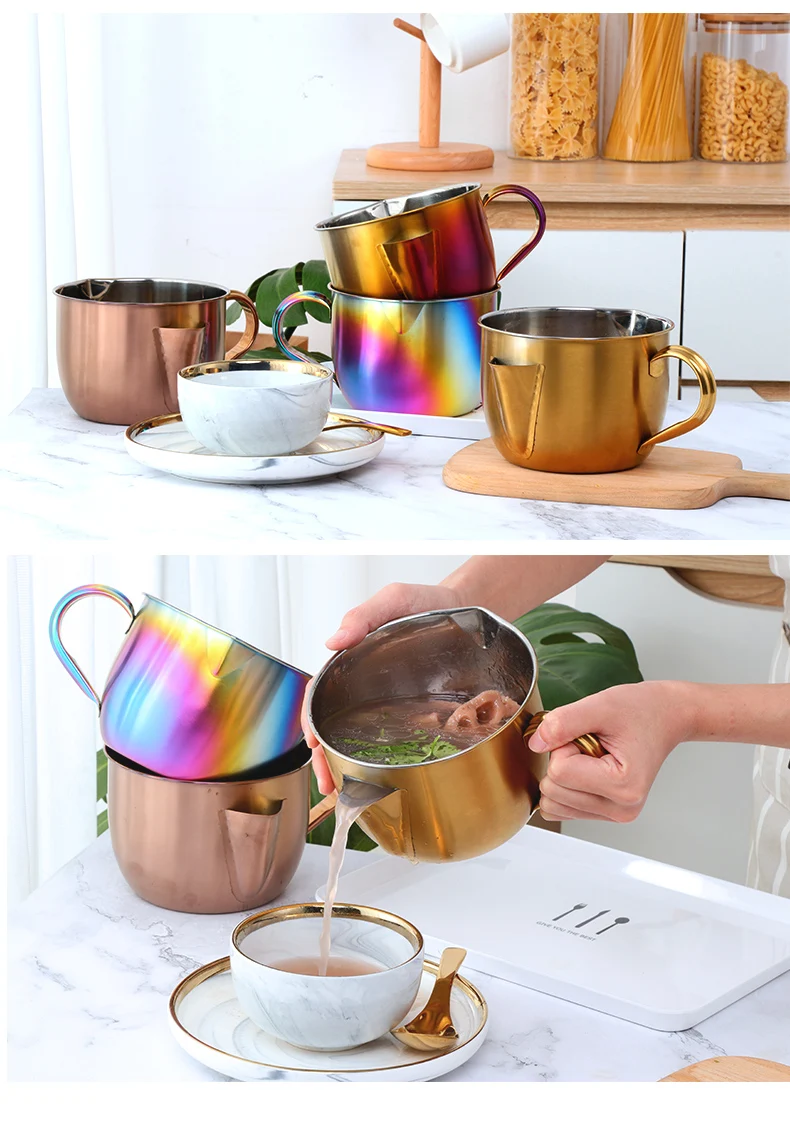 Особенности: Материал: нержавеющая сталь 304 Название: жироотделитель Цвет: серебристый, золотой, розовое золото, Радужный NO.0, Радужный NO.0 Количество: 1 шт. Размер: 10 см * 14 см Емкость: 1000 мл