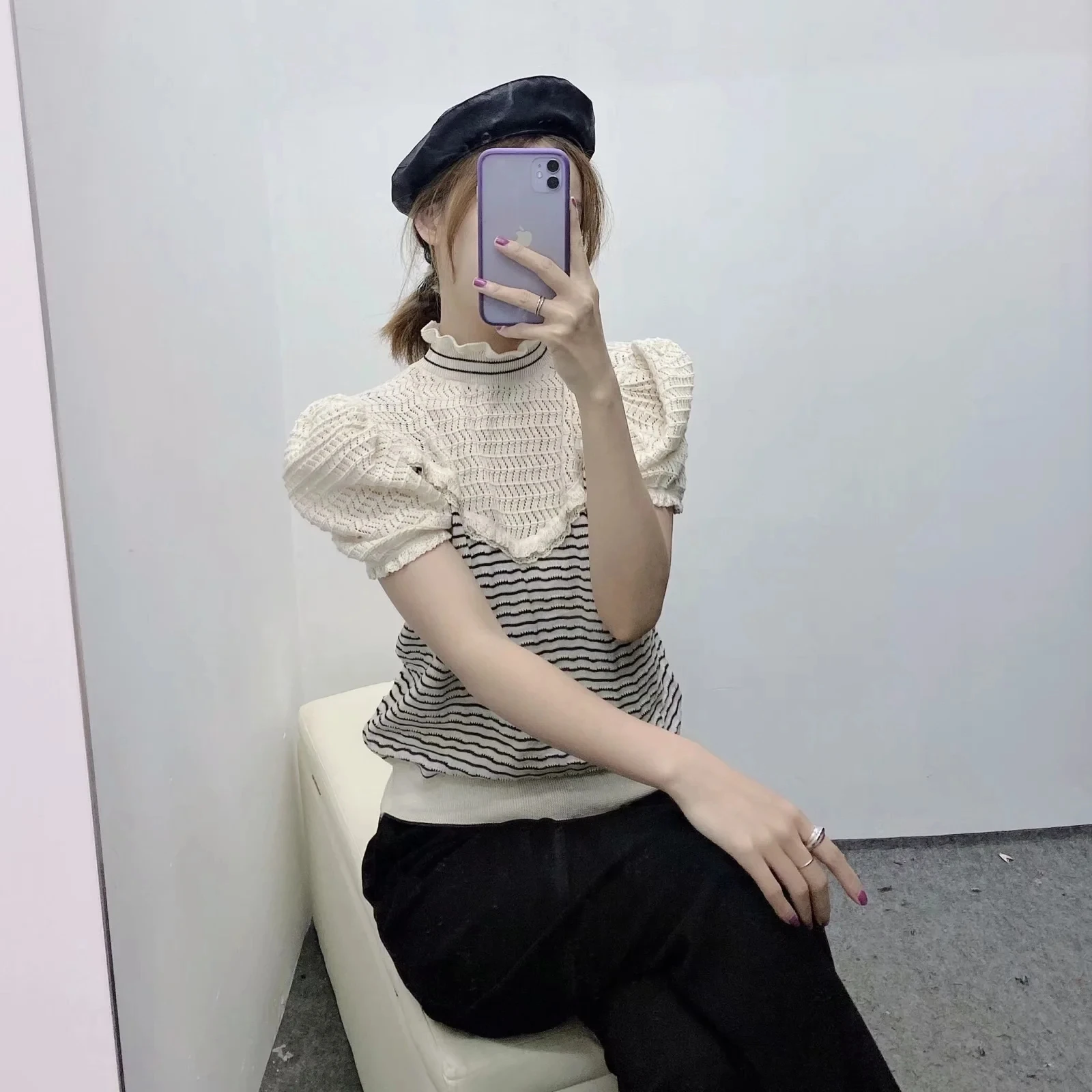 Белый вязаный свитер KHALEE YOSE в полоску Осенний женский оверсайз джемпер с