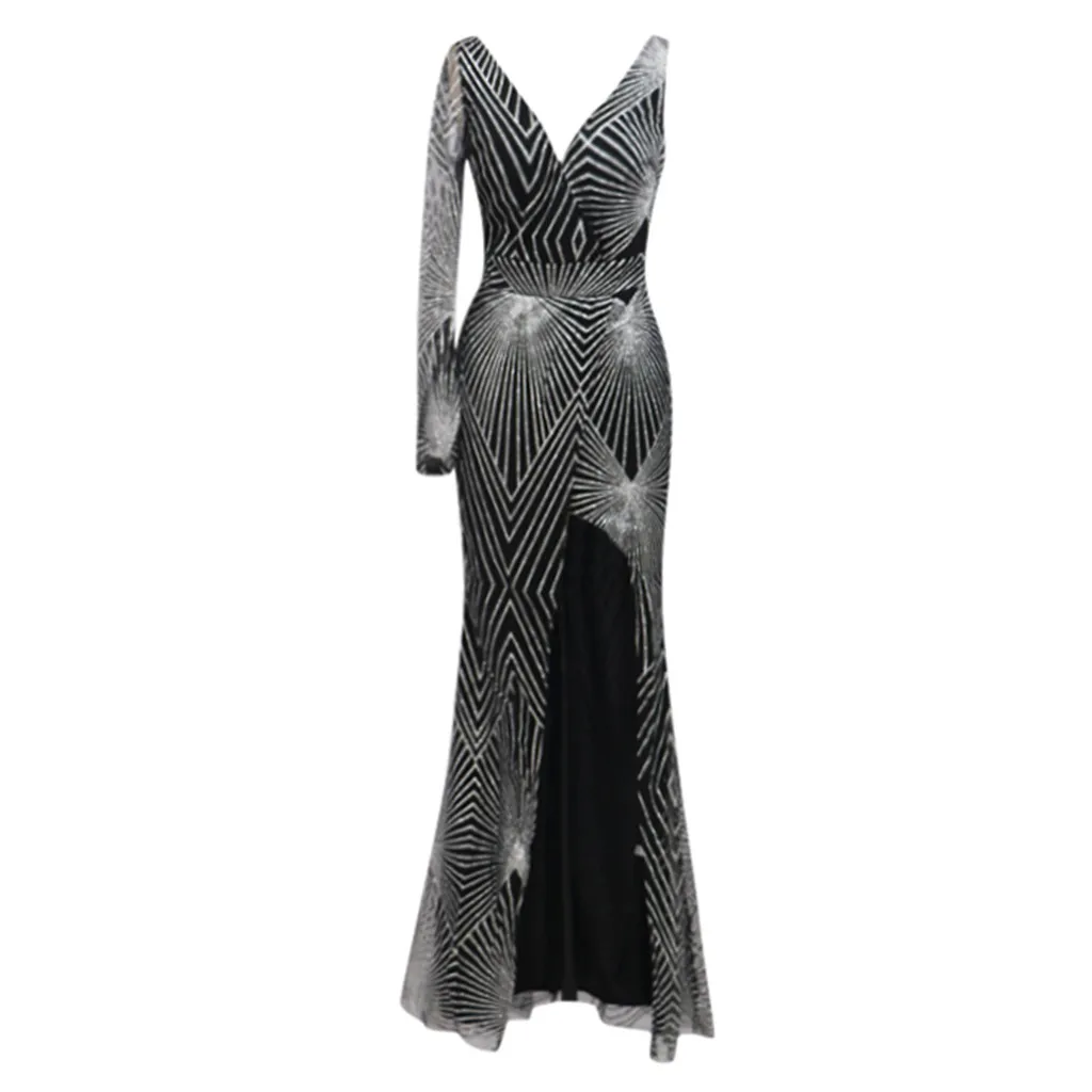 Женский выпускной бал с блестками Сексуальное Золотое вечернее длинное платье подружки невесты с v-образным вырезом