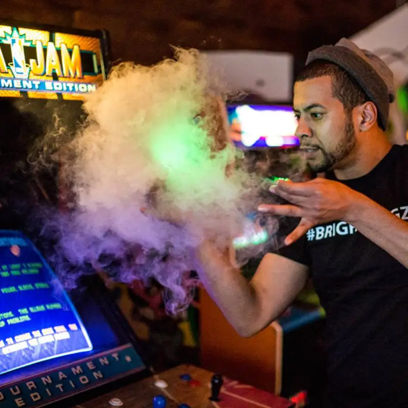 Волшебник аккуратно протирает большой палец и указательным пальцем, дым поднимется между двумя пальцами и безопасен в использовании