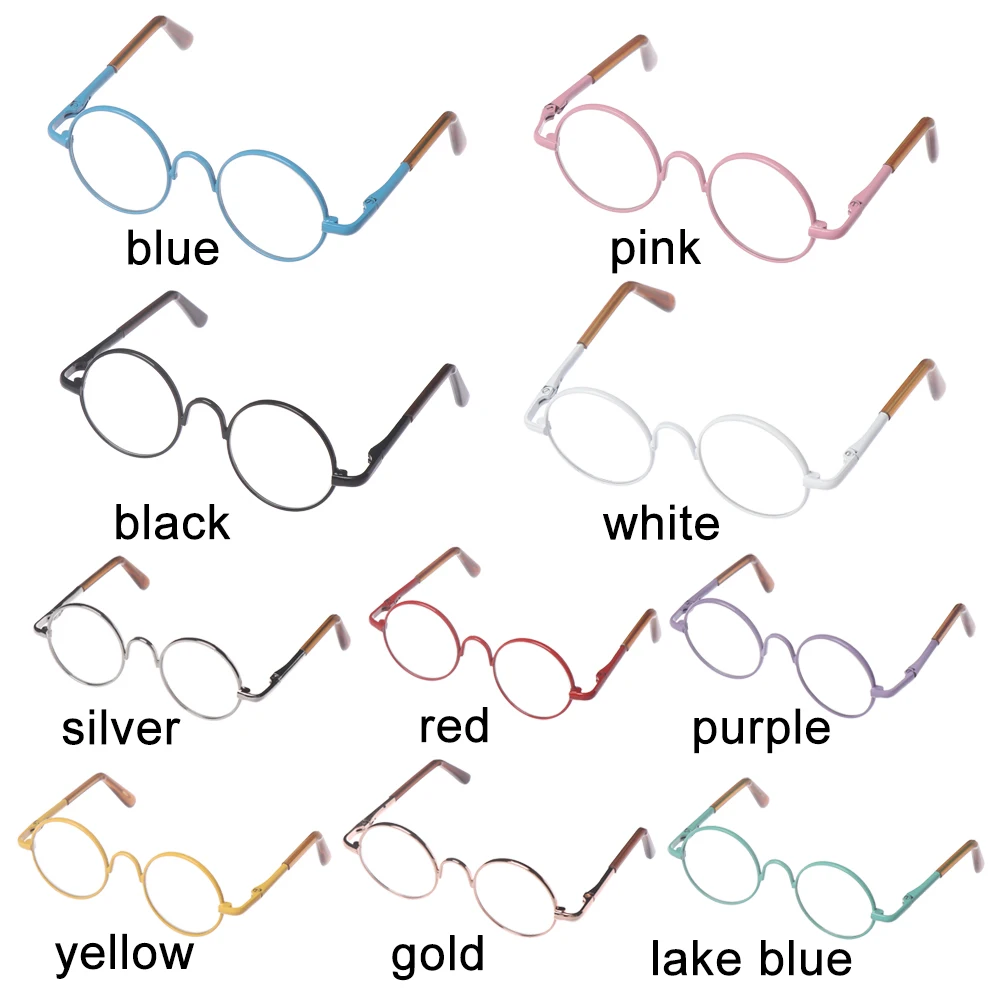 Fashion Mini Glasses for 12/18 Inch Dolls Colorful Eyeglass Miniature Doll Eyewear Classic Retro Metal Round Frame Spectacles