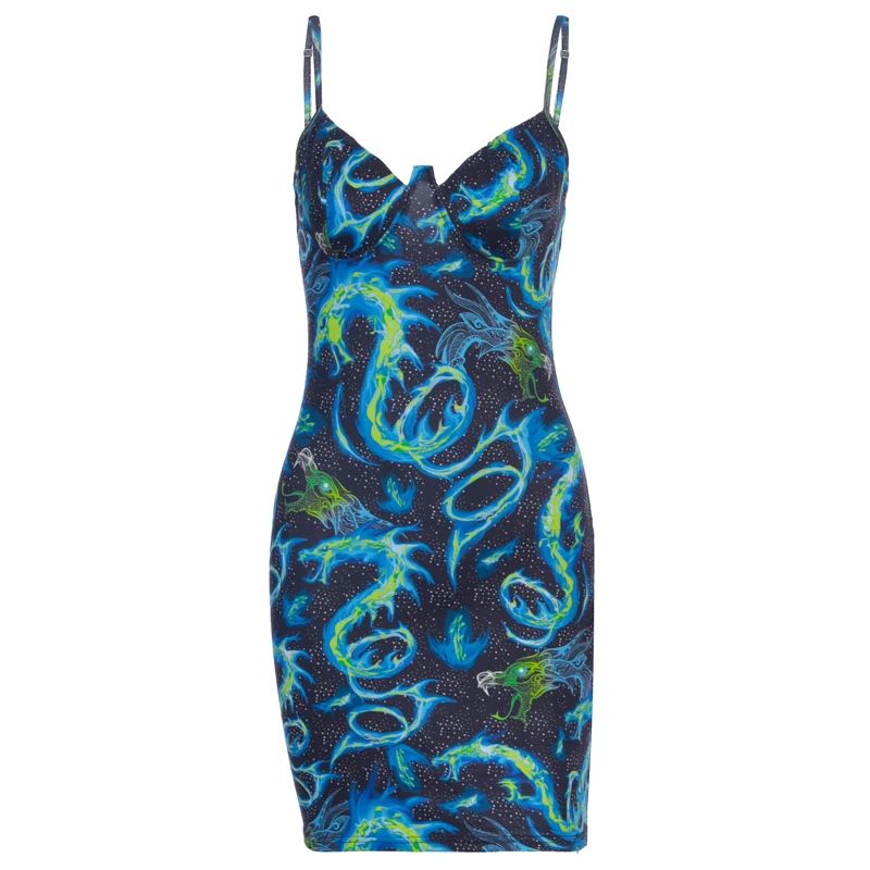Женское платье на тонких бретельках с принтом, летнее сексуальное мини-платье без рукавов, облегающее платье с v-образным вырезом и открытой спиной, ночная женская одежда