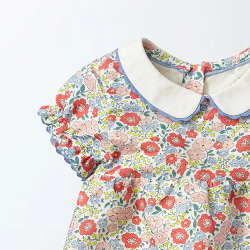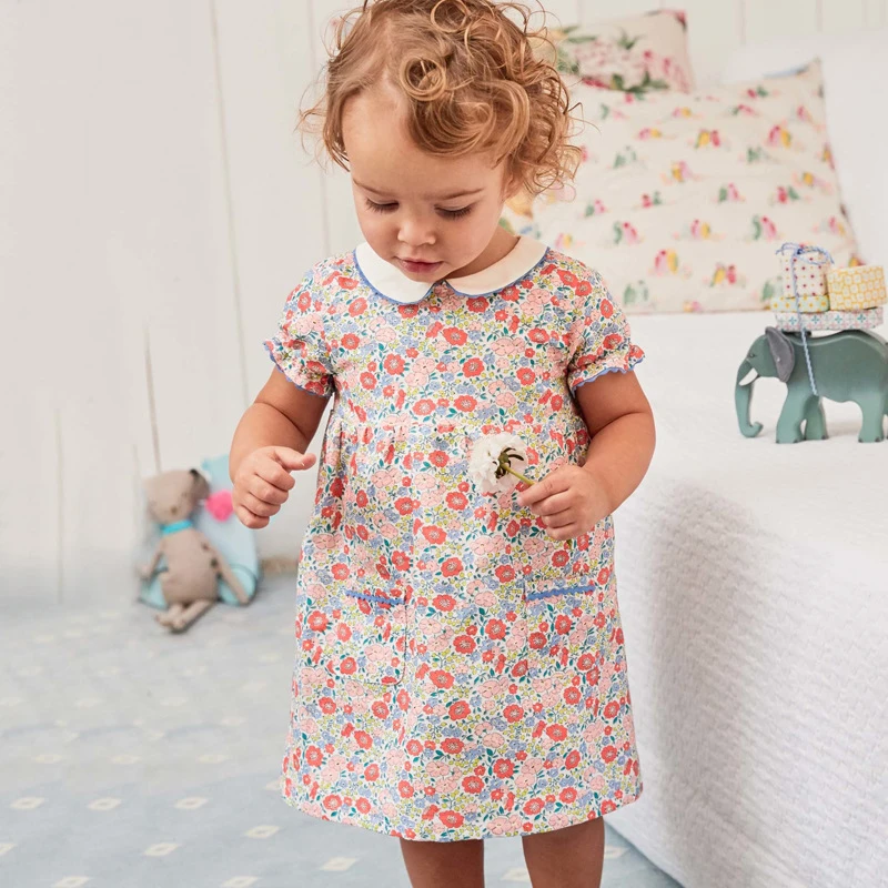 Flower Peter Pan Collar Dress 2020 Summer New Baby Girl 100% Cotton Floral Style Girls Beach Vest Daily School Dress vestidos
