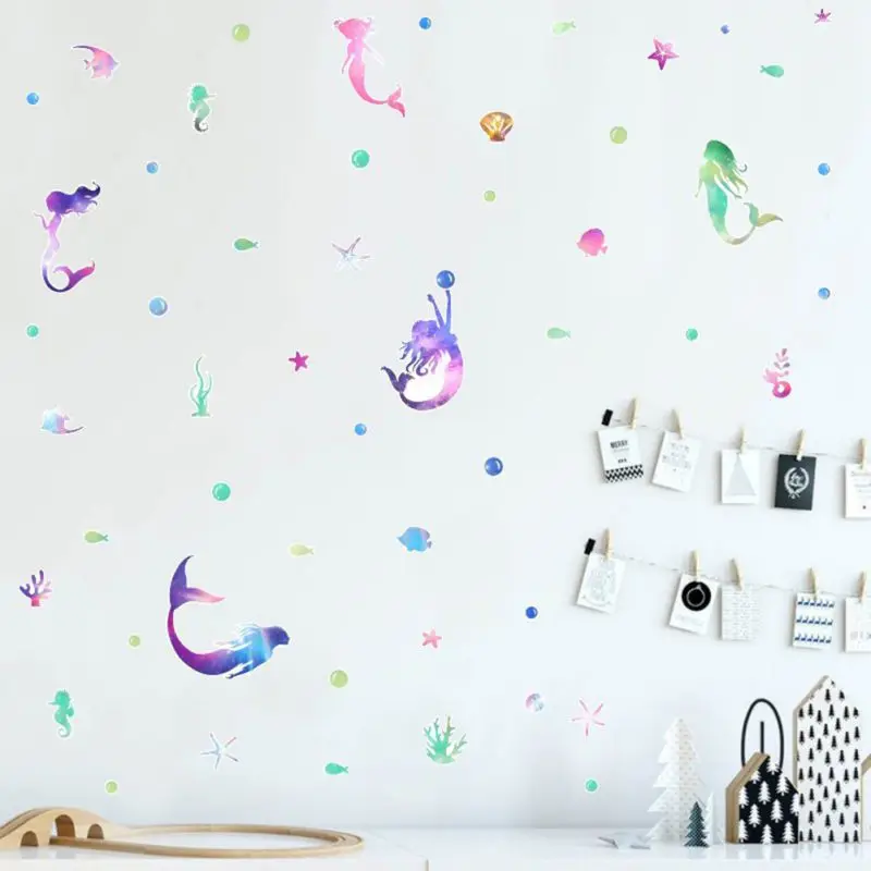 1. Это наклейка на стену русалки, добавляющая сильную счастливую атмосферу для вашего дома и заставляющая вас наслаждаться процессом «сделай сам».