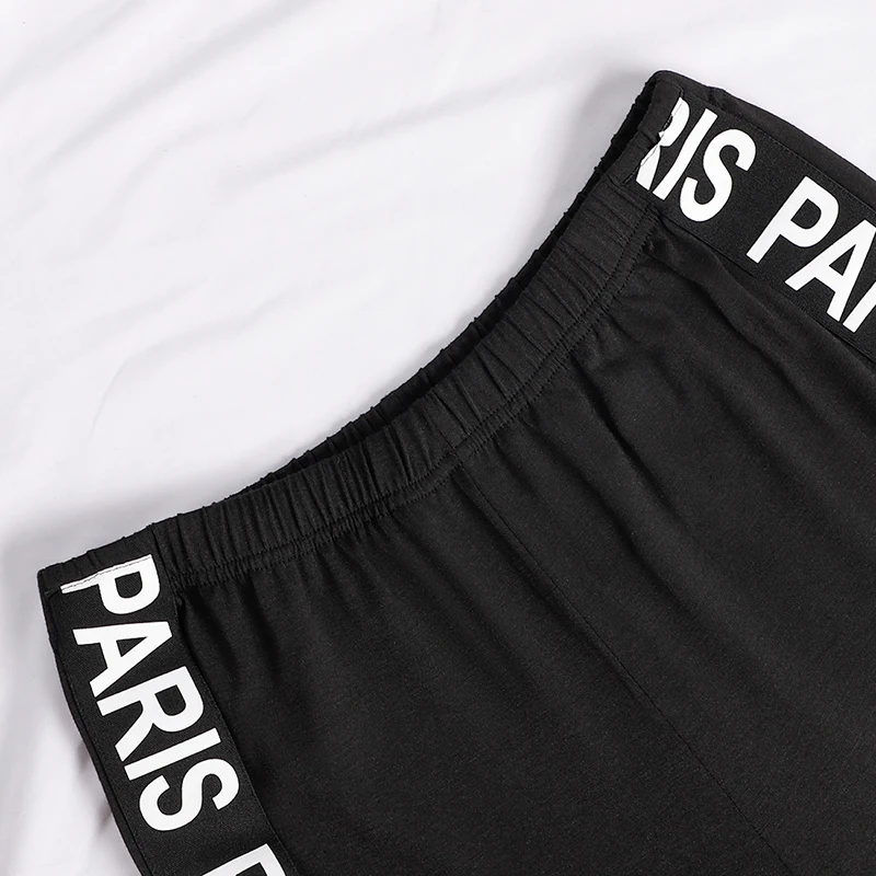 Женский спортивный костюм с открытыми плечами, Женский комплект из 2 предметов с буквенным принтом, топ с короткими рукавами, летний модный спортивный костюм 2020
