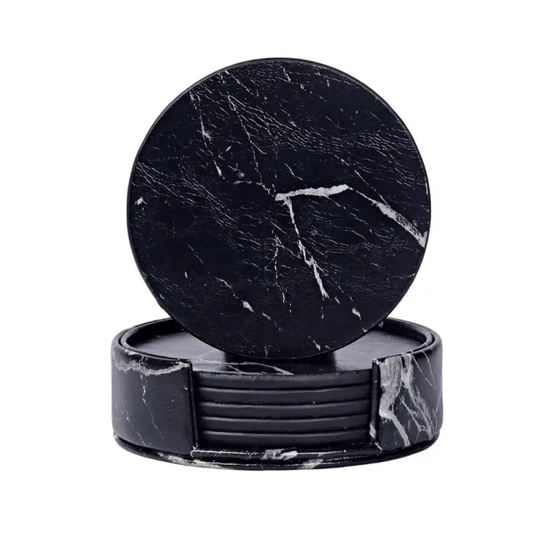 6 шт./компл. круглые квадратные подставки для напитков из искусственной кожи с мрамором, подставки для чашки, подставка для кухонной посуды