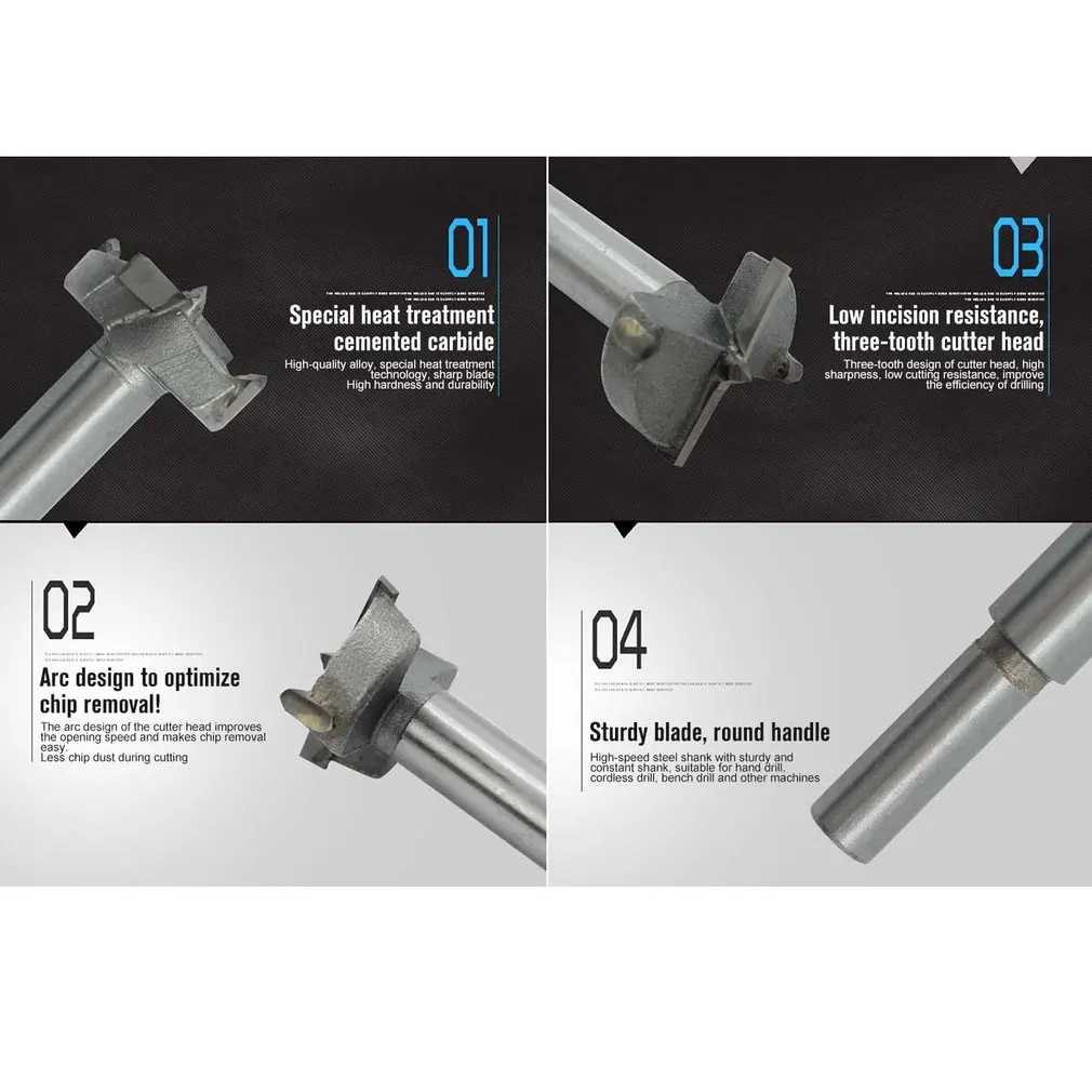 4. Твердосплавный Наконечник специально разработан для очистки отверстий в конце зерна и тонкого запаса, отлично подходит для расточных скрытых петель и Дверных часов.