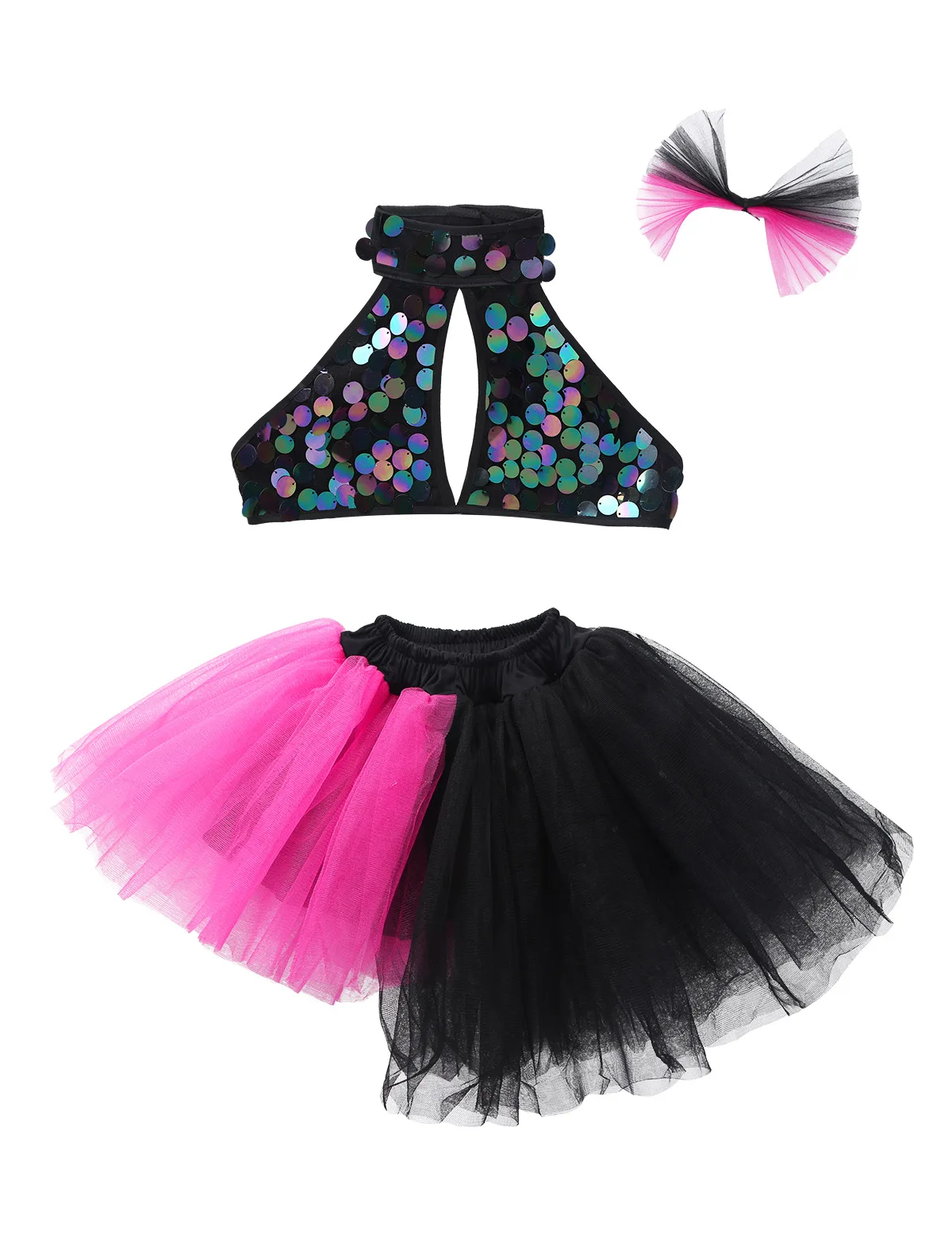 Комплект включает в себя: 1 кроп-топ, 1 юбка-пачка, 1 заколка для волос
