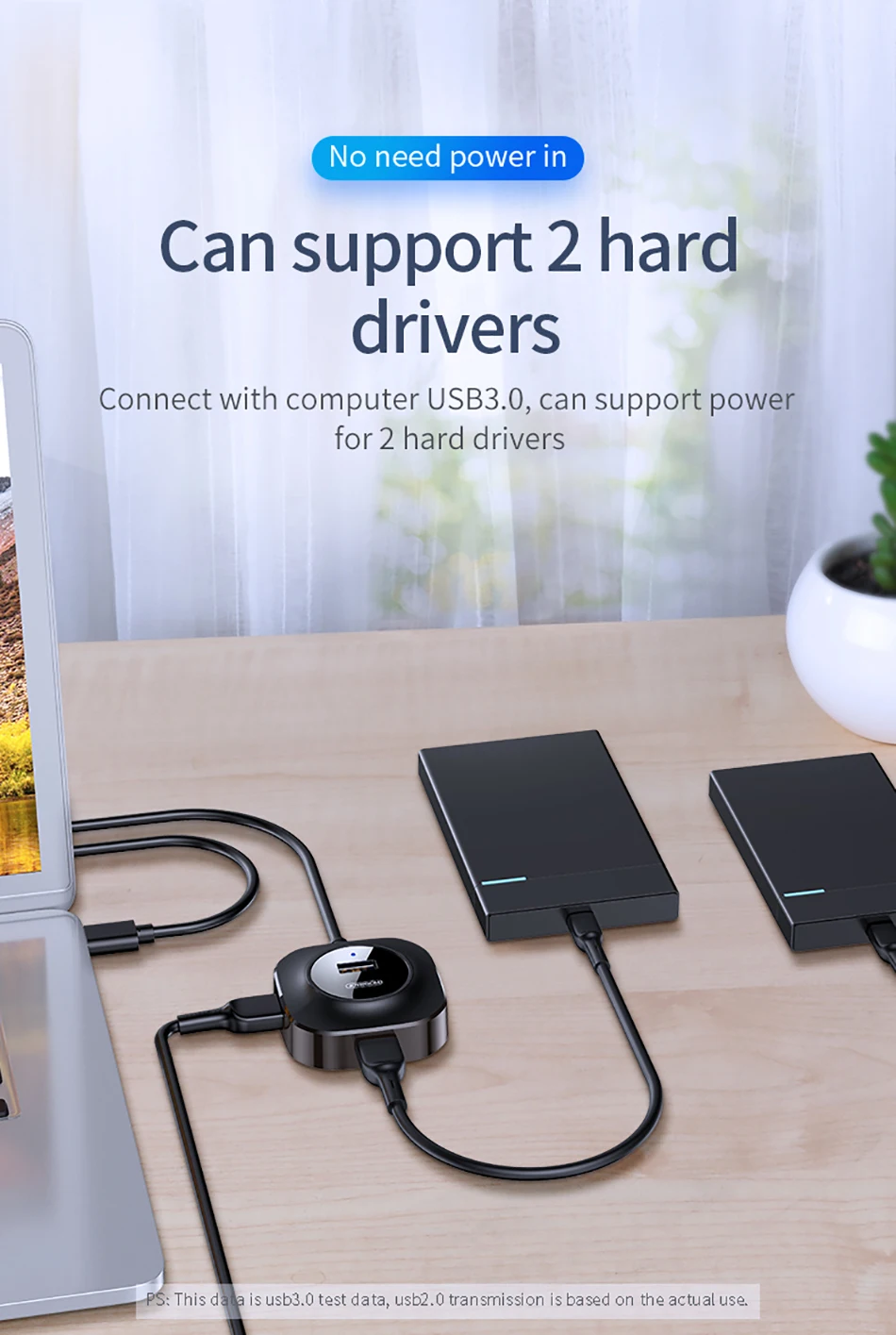 Connect with computer USB3.0, can support power for 2 hard drivers