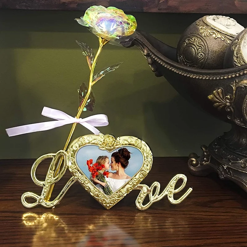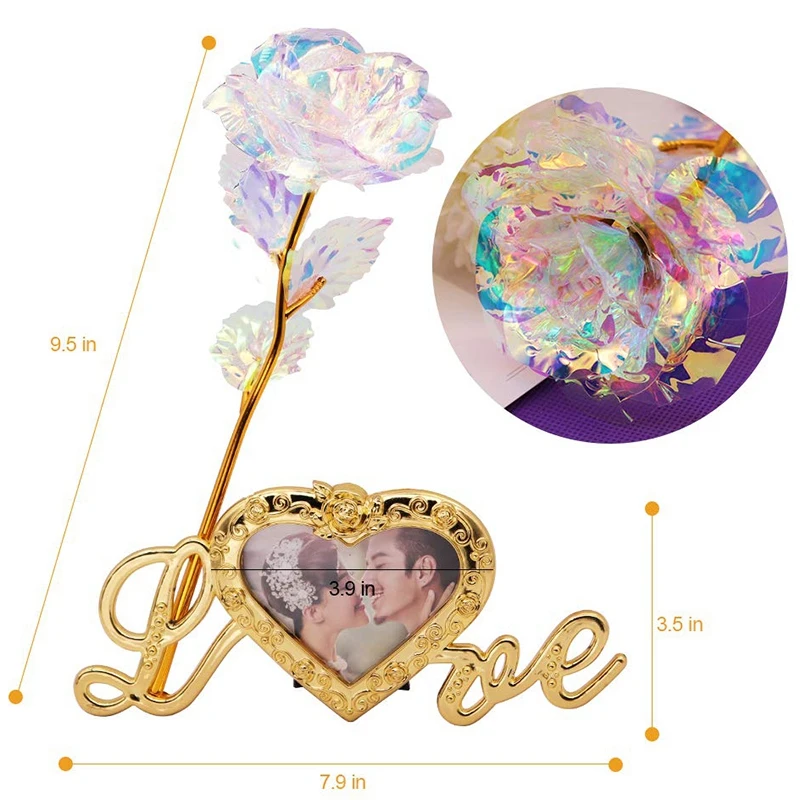 Стильный домашний декор: фоторамка около 3,9 дюйма на 3,5 дюйма. Этот поддельный цветок подарок на День святого Валентина для нее сделан с красочной розой и поставляется с фоторамкой, которая позволяет разместить его на любой столешнице, столе или туалетном столике. Это украшение, которое добавит элегантности, стиля и волшебного очарования вашему интерьеру