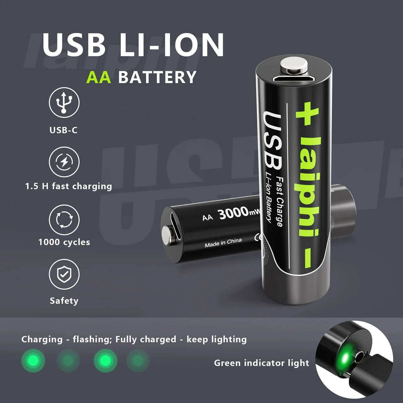 AA 1,5 V 3000 mWh батарея USB быстрая зарядка перезаряжаемый литий-полимерный аккумулятор