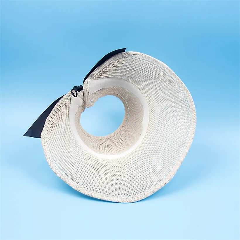 Женская Солнцезащитная шляпа с защитой от ультрафиолета, женская кепка с бантом и козырьком, хлопковая Вязаная летняя кепка, солнцезащитная Кепка, пляжная кепка с отверстием в виде хвоста
