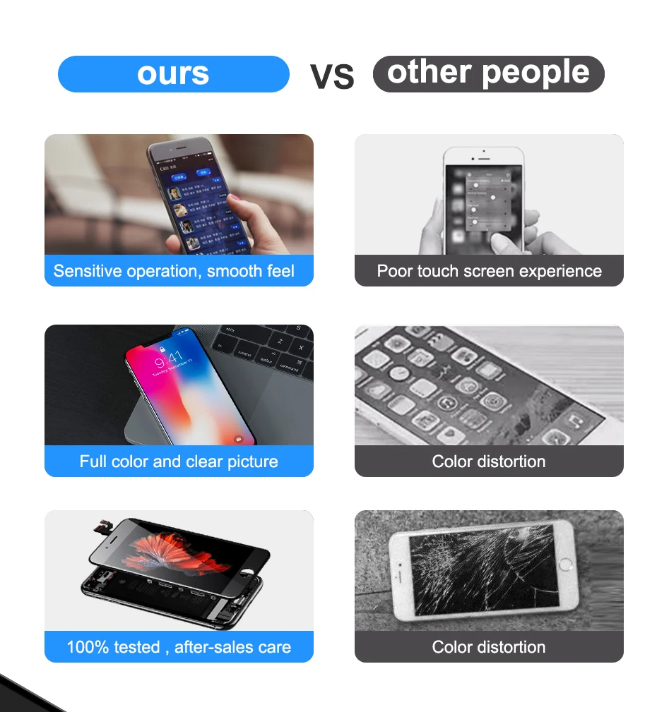 Наш ЖК-экран может заменить ваш сломанный экран, справиться с мертвыми пикселей, без ответа прикосновения и других проблем. Ваш телефон не только выглядит новым, но и выглядит как мечта.