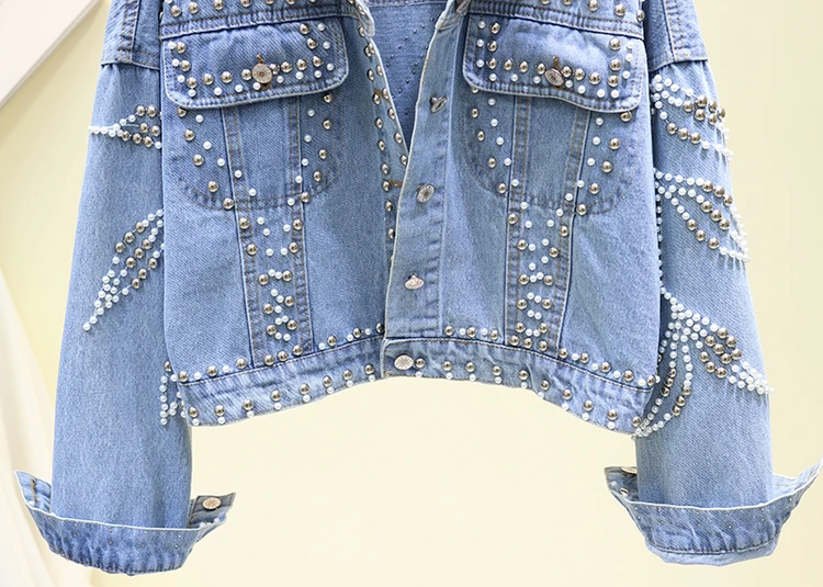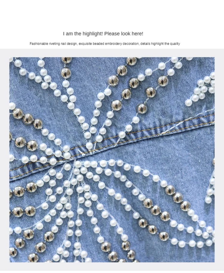 2020 женские джинсовые пальто тяжелый платья с бусами ручной работы заклепками