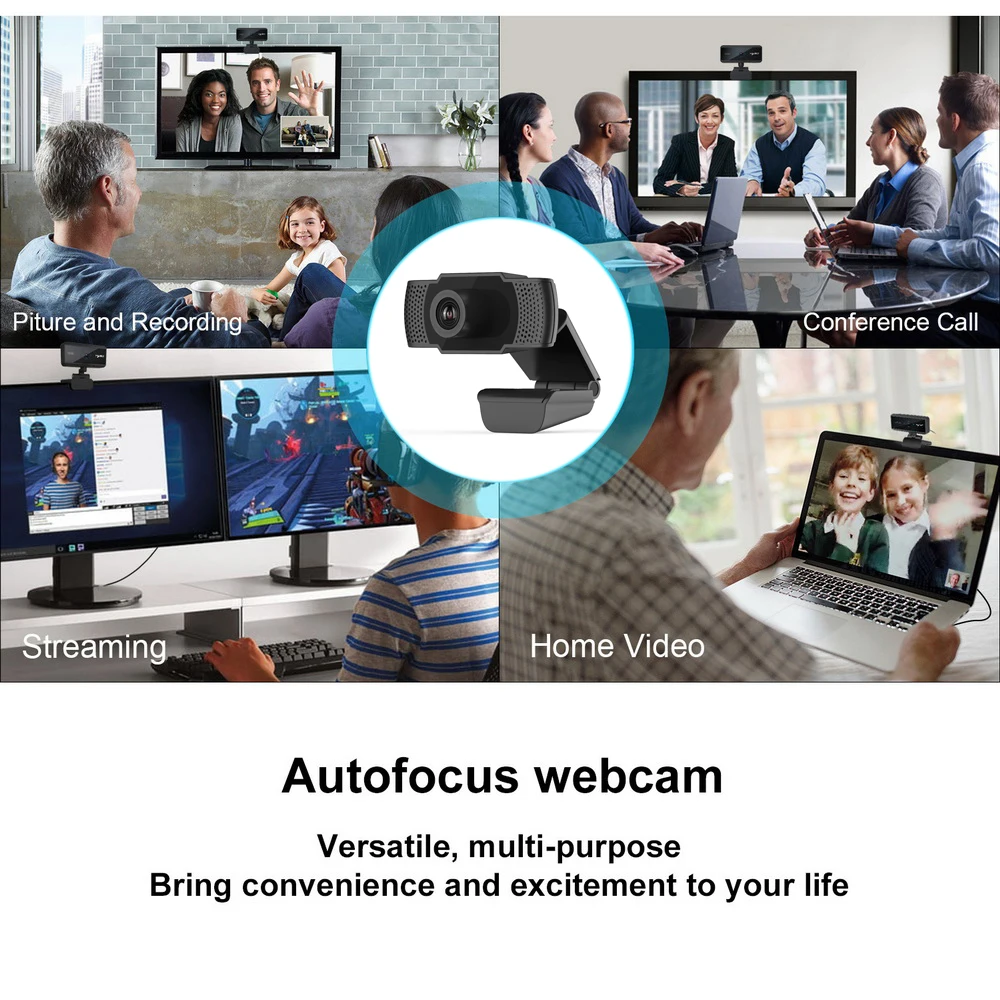 Встроенный звукопоглощающий микрофон, разрешение 1920x1080, истинное 2 миллиона пикселей, позволяет вам наслаждаться большим экраном, ваш голос может быть четко слышен в 10 метров, что означает, что вам не нужно быть рядом,
