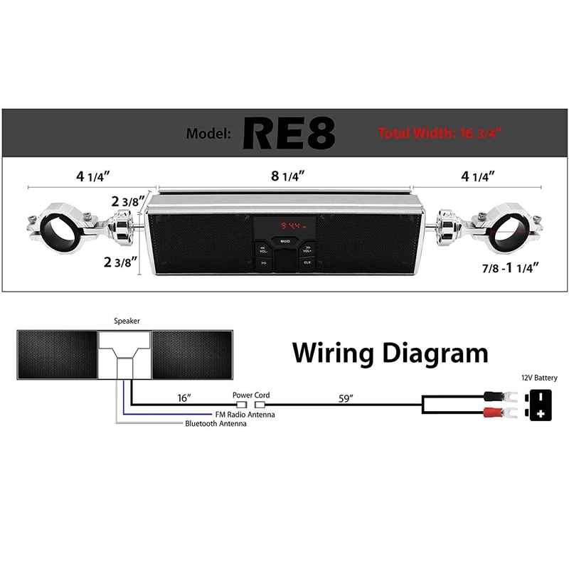 Инновационный монтажный дизайн: Новый шаровой наконечник с крепежным зажимом поддерживает руль от 7/8 до 1 1/4 дюйма. 360 градусов Поворотный-возможность для более пользовательской установки. В комплект входит 59-дюймовый кабель для аккумулятора с кольцевым клеммным соединителем.