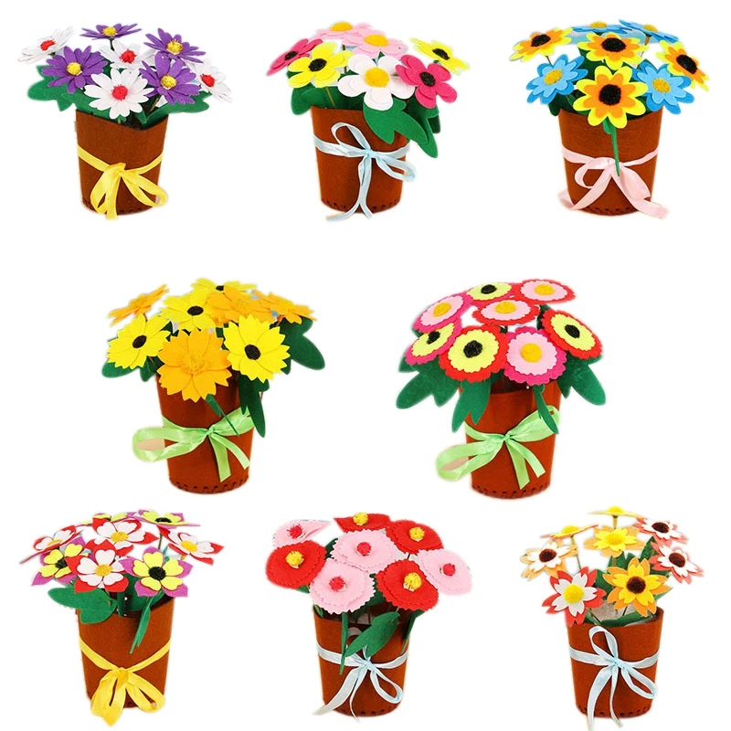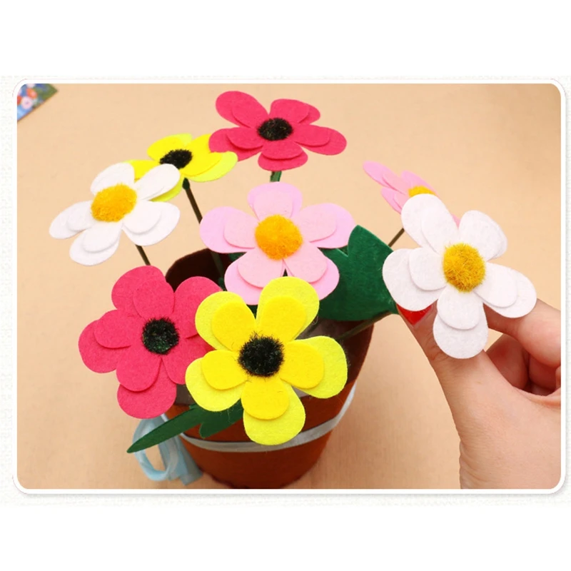 Accessories materials: non-woven flower pots, non-woven petals, flower leaves, hemp rope, plastic needles that do not hurt your hands, etc.