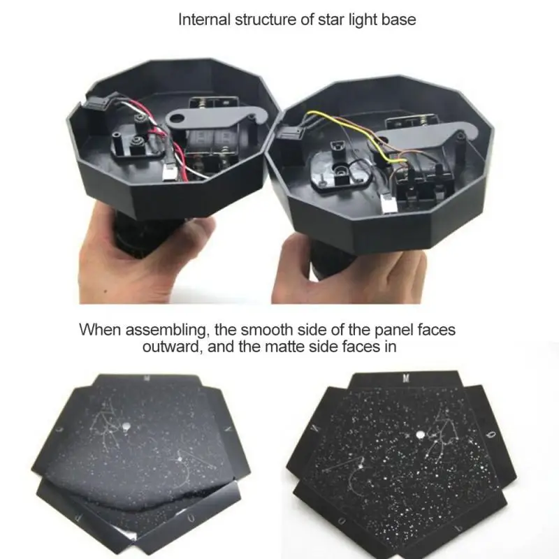 С вращающейся базой с выравниванием точки компаса, вы можете настроить его, настроив его в соответствии с вашим местоположением и временем года, чтобы он мог проецировать карту чистого ночного неба вокруг вас