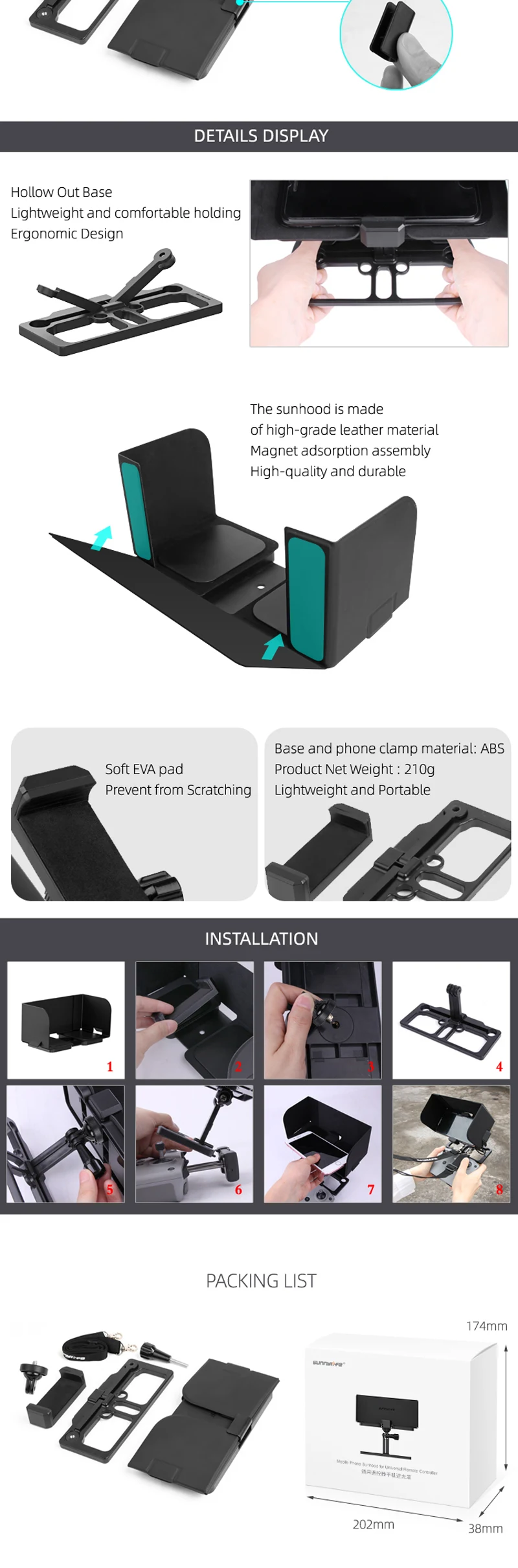 -Два в одном пульт дистанционного управления полноэкранный мобильный телефон держатель с капюшоном, подходит для Mavic Air 2 / Mavic Mini / Mavic 2 / Mavic Air / Mavic Pro / Spark пульт дистанционного управления