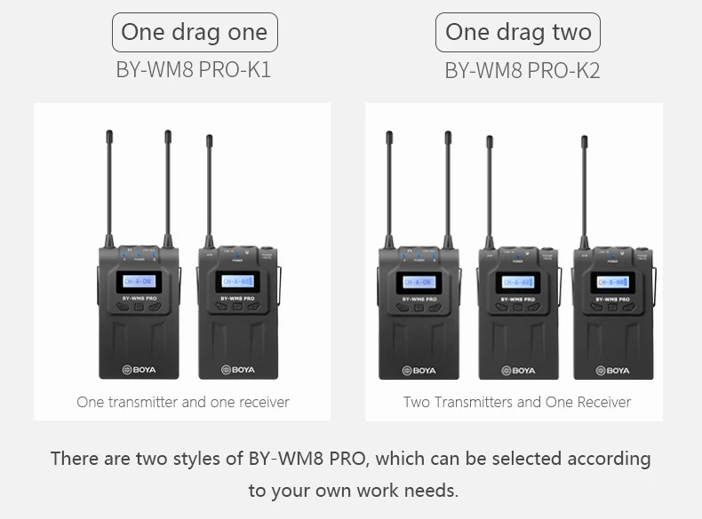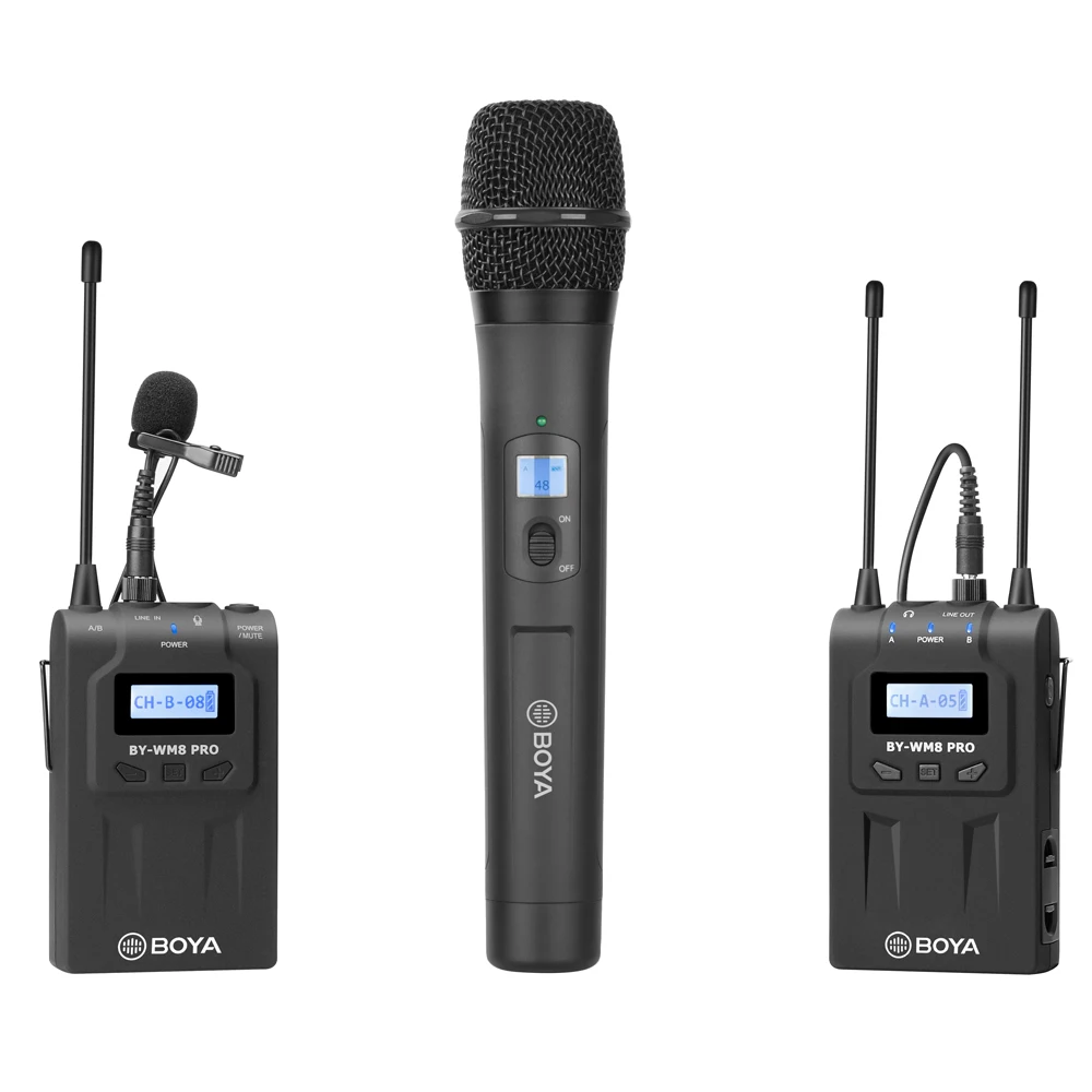 BOYA BY-WHM8 Pro-это UHF беспроводной портативный передатчик, разработанный для работы с BY-WM8 Pro K1/K2 ресивером, BOYA BY-WXLR8 Pro UHF Беспроводной XLR аудио передатчик с ЖК-дисплеем беспроводной микрофон системы.