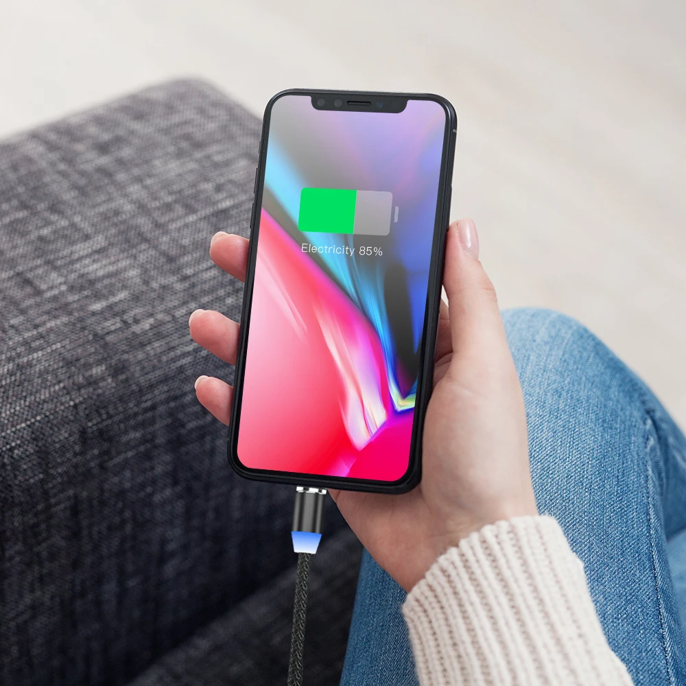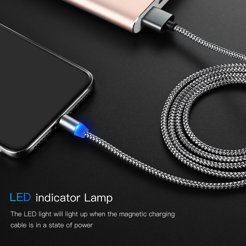 1 метр 360 ° Авто-подключение круглый светодиодный индикатор зарядки Магнитный кабельДля Micro-USB для iphone для type C