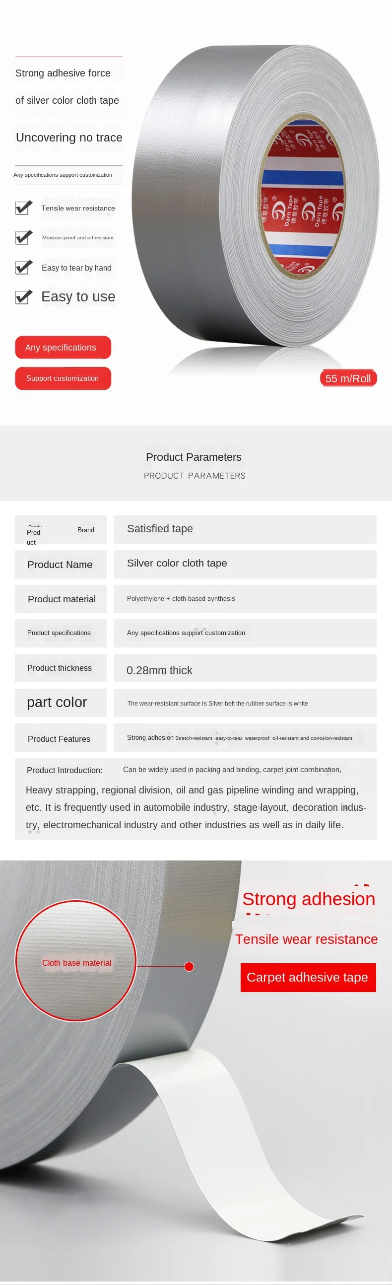 Информация о продукте:Эта тканевая лента серебристого цвета имеет широкий спектр применений, не деформируется и не оставляет следов.Детальный рисунок продукта: