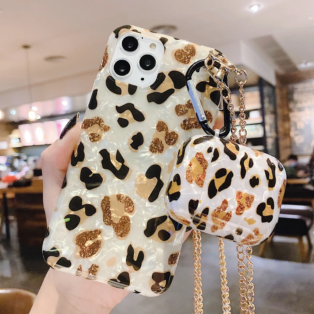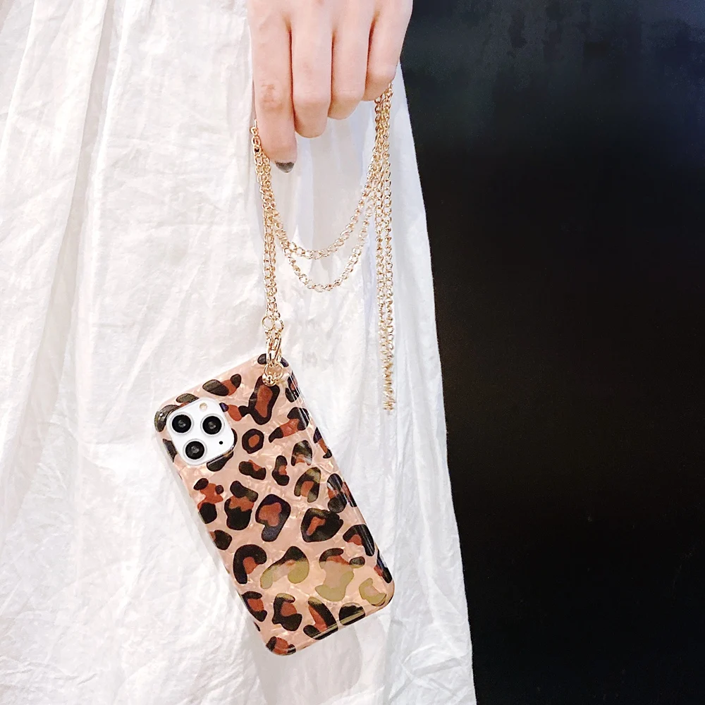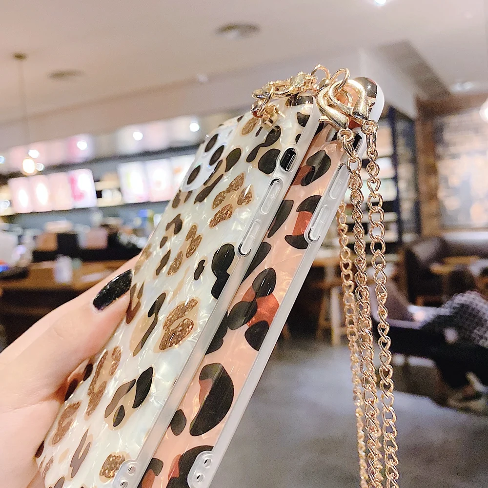 Чехол с леопардовым принтом для IPhone 11 pro Max X 6 S 6 s 7 8 Plus XR XS MAX, мягкий чехол для телефона, шнур, металлическая цепочка, ожерелье, веревка, чехол