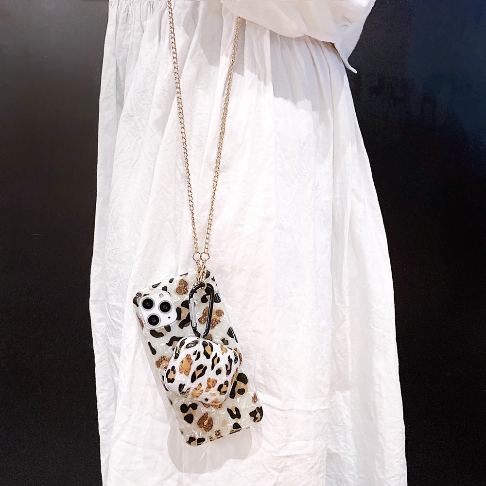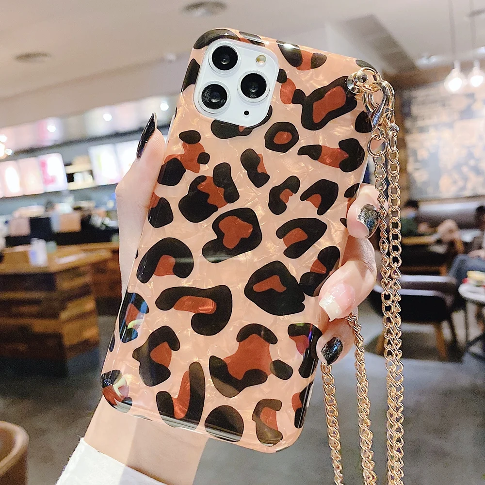 Чехол с леопардовым принтом для IPhone 11 pro Max X 6 S 6 s 7 8 Plus XR XS MAX, мягкий чехол для телефона, шнур, металлическая цепочка, ожерелье, веревка, чехол