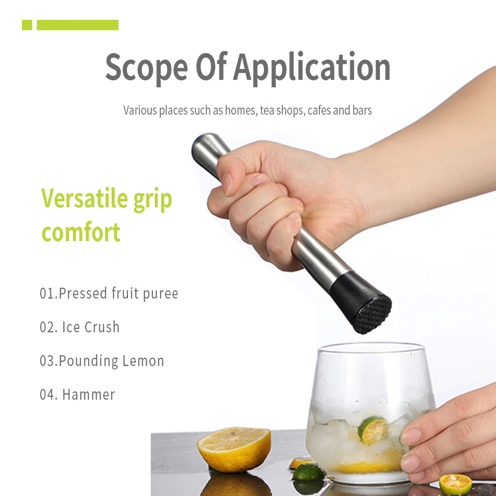 -100% новый и высокое качество. -Высококачественный материал из нержавеющей стали, прочный и легкий для чистки. -Эргономичная ручка из сверхпрочной нержавеющей стали. -Изысканные, здоровые и безопасные изделия для смешивания напитков. -Подходит для бара, ресторана, паба, отеля и домашнего использования. -Обычно используется для сушки различных аксессуаров, свежих фруктов для смешивания в коктейле или для измельчения других продуктов.