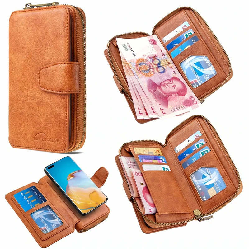 Мужской многофункциональный кожаный чехол-кошелек на молнии для Huawei P40 Pro P Smart 2019 Honor 10 Lite Honor 9X P Smart Z с отделением для карт
