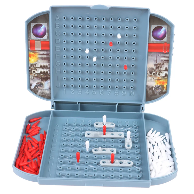 В комплекте 2 портативных боевых кейса, 10 пластиковых кораблей, 84 красных хит-колышка, 168 белых мисс-колышек, лист для этикетки, инструкция.
