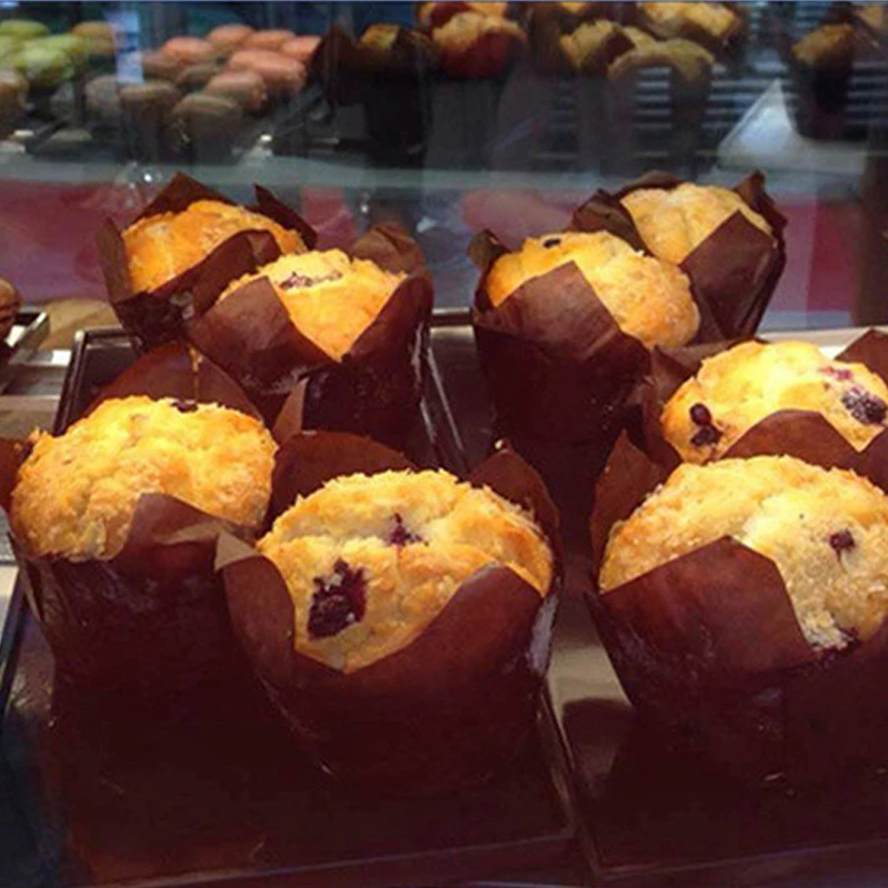 <Материал для пищевых продуктов: изготовлен из высококачественной маслостойкой бумаги, антипригарной, натуральной бумаги для кексов помогает удерживать влагу и способствует даже выпеканию кексов или маффинов.