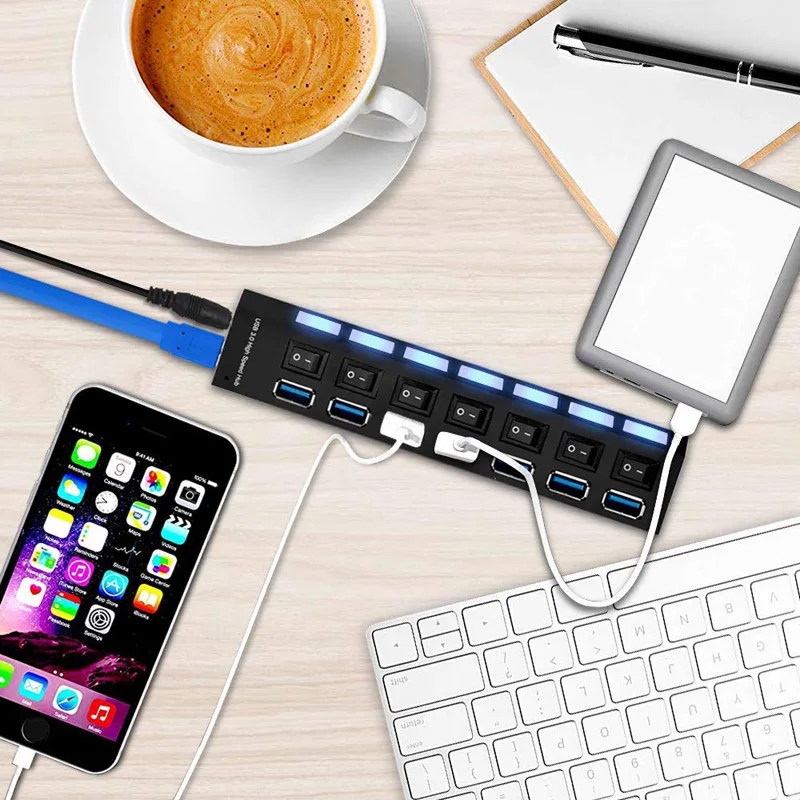 USB 3,0 концентратор 4 порта usb-хаб USB сплиттер адаптер питания с индивидуальными переключателями питания для компьютера ноутбука аксессуары концентратор USB 3,0