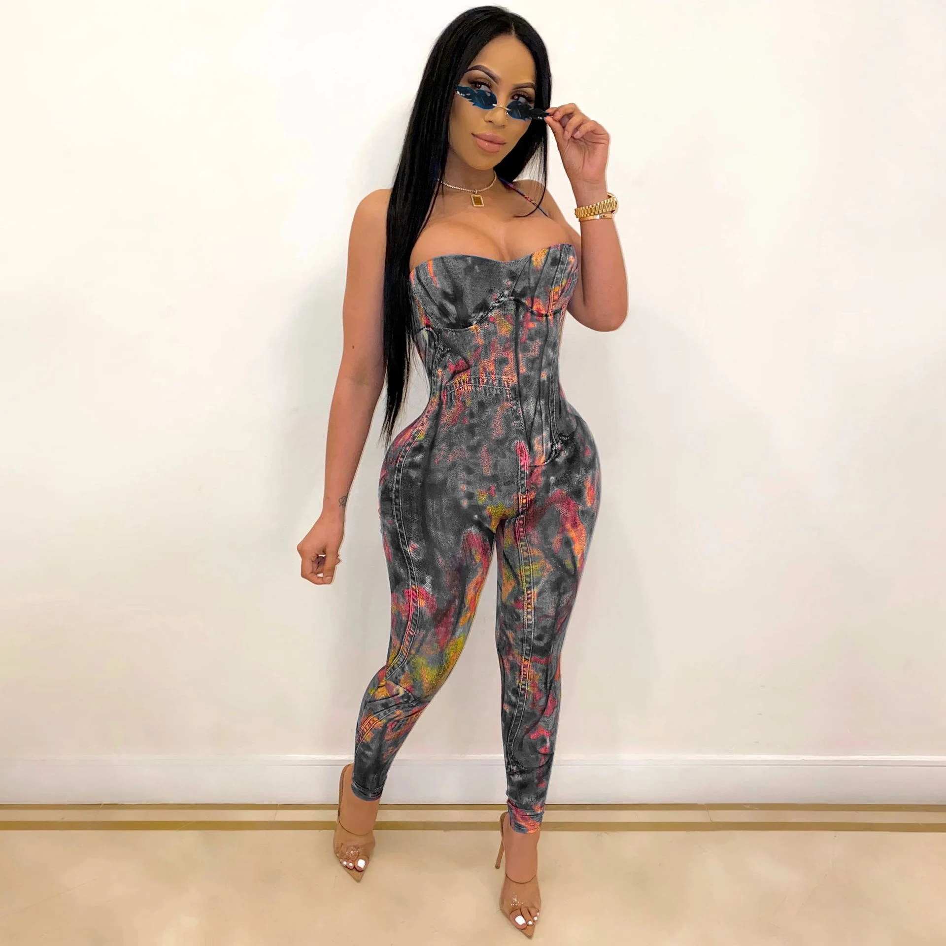 Сексуальный женский джинсовый комбинезон с принтом граффити и открытой спиной, летний женский комбинезон 2020