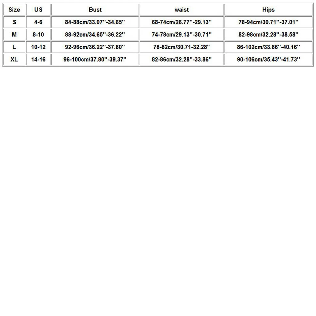 | Размер: S | США: 4-6 | Обхват груди: 84-88 см/33,07-34,65 дюйма | Талия: 68-74 см/26,77-29,13 дюйма | Бедра: 78-94 см/30,71-37,01 дюйма |