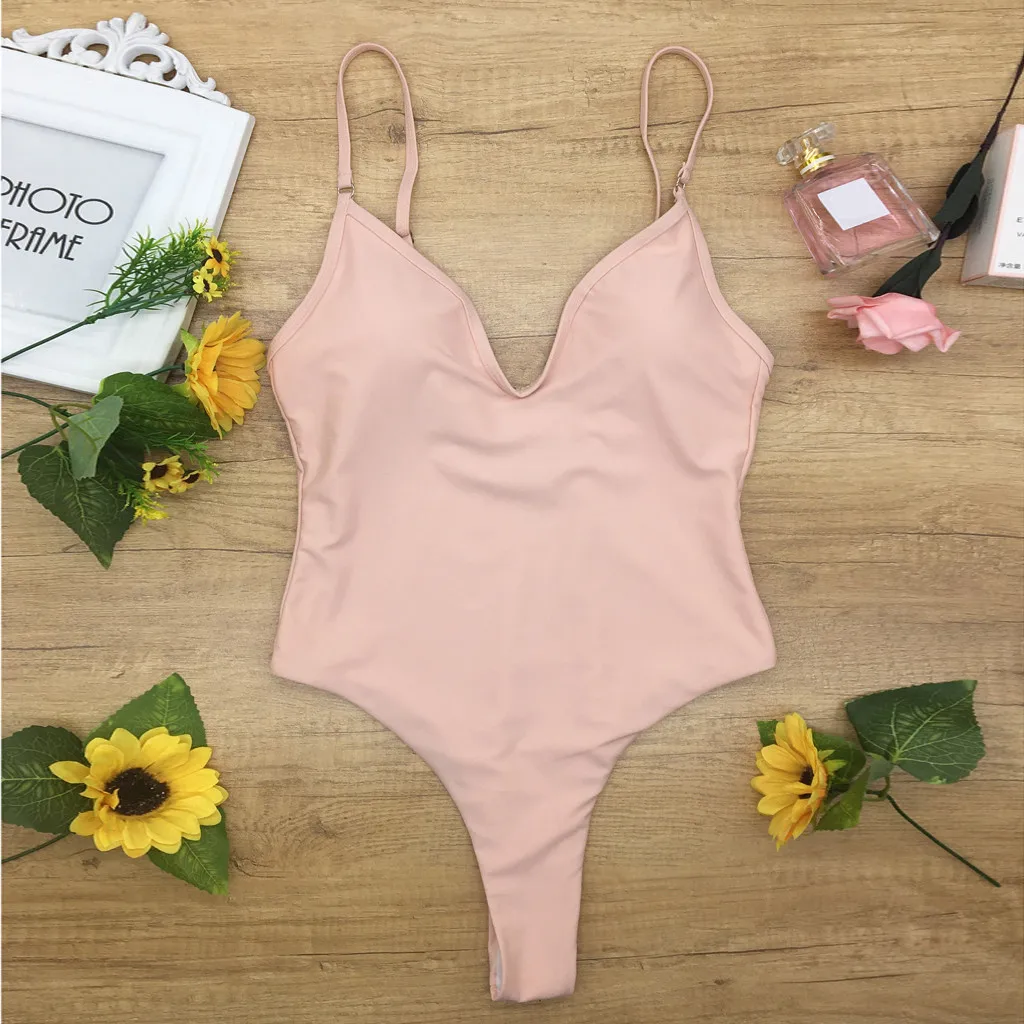 Женский сексуальный однотонный Облегающий комбинезон, Пляжное бикини, цельный купальник