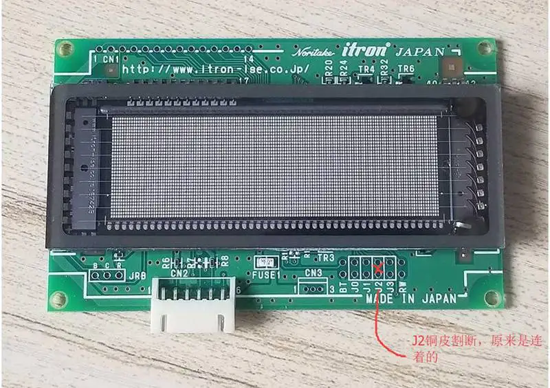 Перемычка J2 модуля по умолчанию коротка, которую можно отрезать, чтобы сделать J2 подвешенным в воздухе. 2,3 ножки короткого замыкания CN3 могут войти в тестовый режим. При подключении модуля к источнику питания 5 В может отображаться тестовая графика и символы.