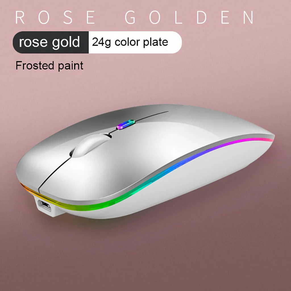 LED Slim Rechargeable Wireless Silent Mouse, 2.4G Wireless+Bluetooth5.0 Portable USB Optical Wireless Computer Mice with USB Receiver