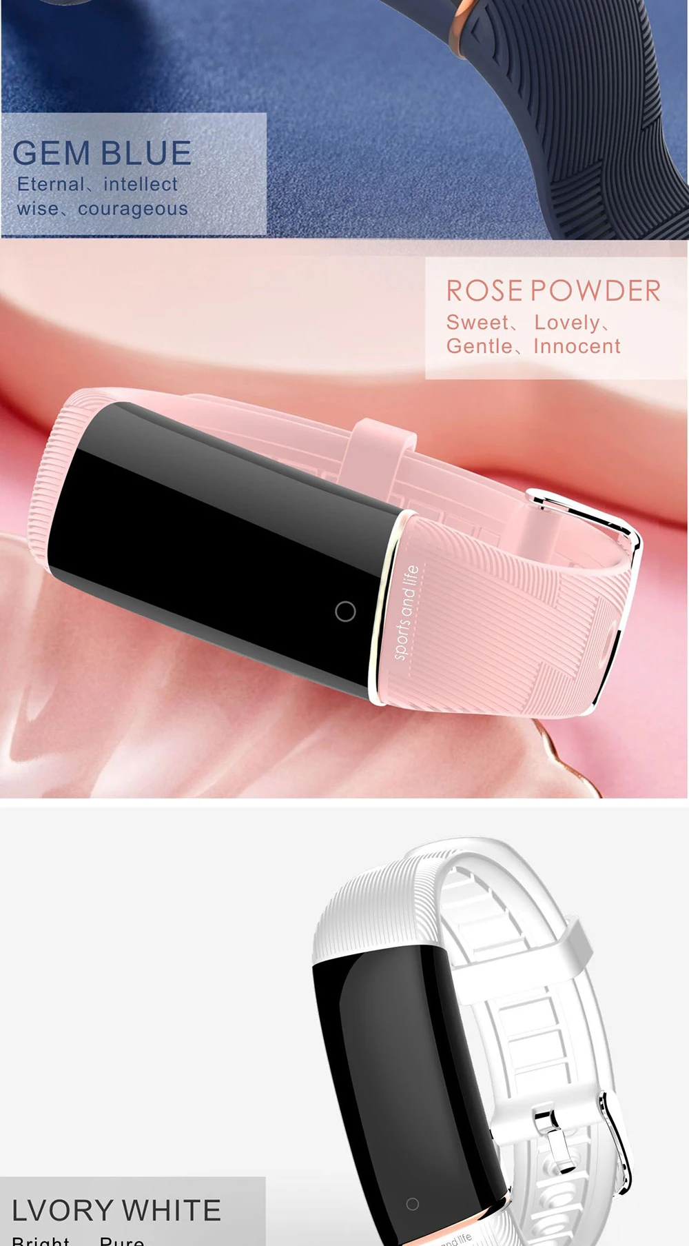 Особенности Пульс, кровяное давление, кислород в крови Отображение времени и даты, подсчет шагов, калорий, расстояние с экраном Стандартная функция упражнений (количество шагов, расстояние, калории) Три интерфейса времени Мониторинг сна (продолжительность сна, качество сна Напоминания о телефонных звонках, SMS, QQ, WeChat, Facebook, Skype, Twitter, WhatsApp, Line, KakaoTalk доставка сообщений Поднимите яркий экран руки, напоминание о сидячем положении, ищите мобильный телефон Несколько режимов упражнений (ходьба, бег, Велоспорт, альпинизм, плавание) Отказывайтесь принимать звонки, встряхивать фотографии, устанавливать спортивные цели, делиться информацией о фитнесе Параметры продукта Системные требования: Android 4,4 и выше, IOS 8,0 и выше, поддержка bluetooth 4,0 Версия Bluetooth: BLE 4,0 Чип bluetooth: DA14585 "Модуль сердечного ритма Рабочий ток: "HRS3300 Дисплей экрана: 0,96 дюймовый цветной экран Емкость аккумулятора: 100 мАч Время работы в режиме ожидания: от 20 до 25 дней Время работы: 7 дней или около того Физические кнопки: сенсорный Двигатель: Встроенный Вибрационный напоминание Интерфейс зарядки: зарядка через USB Уровень водонепроницаемости: IP67 Датчик: датчик гравитации KX023