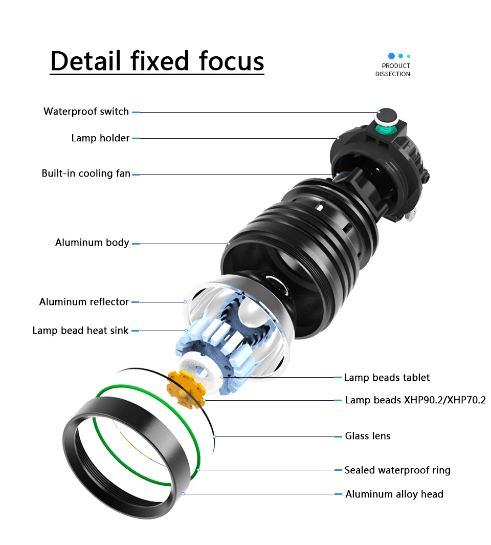 • Светодиодный излучатель: 7-ядерный-XHP90.2 / 4-Core-XHP90.2 / 4-Core-XHP70,2(Выбор)