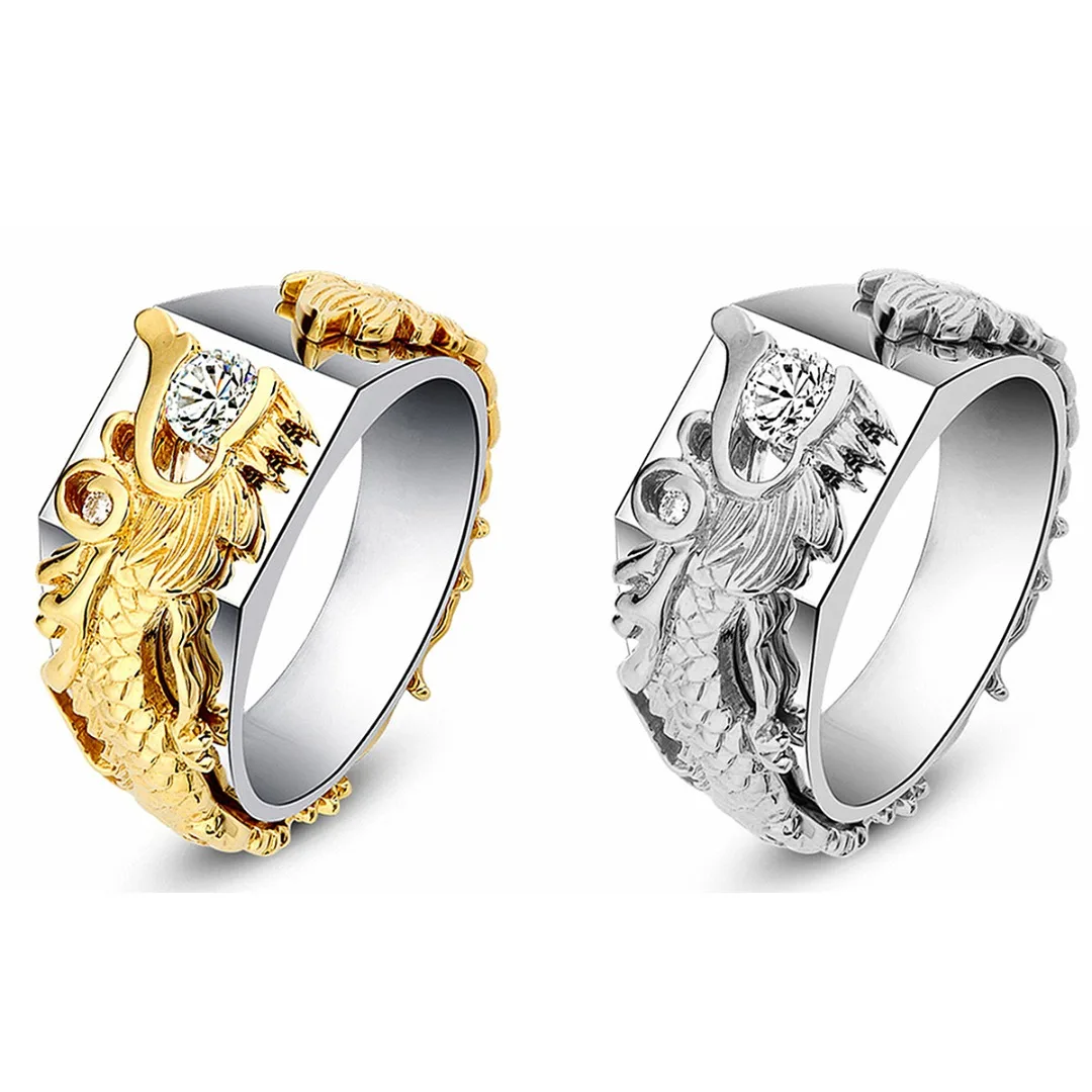 Мужское кольцо с инкрустированным кристаллом Dragon, кольцо властителя, классические Позолоченные Стразы, модные ювелирные изделия для подаркаUS $2,95