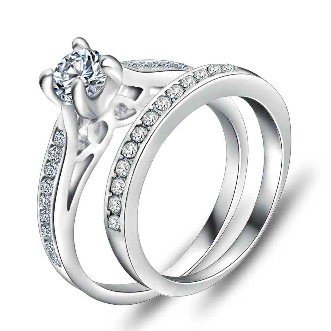 Женское серебряное кольцо с фианитом, 2 шт., модное роскошное обручальное кольцо, вечерние ювелирные изделияUS $1,66