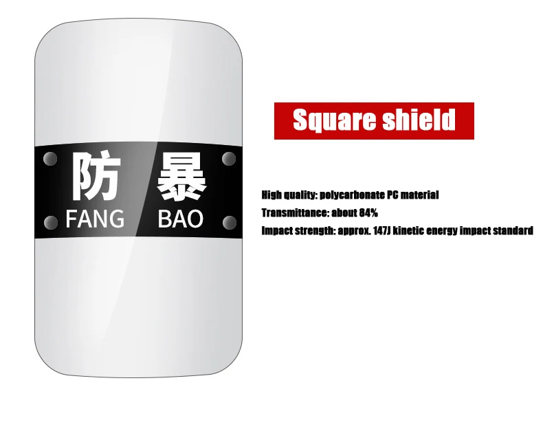 Specification: 900 x 500 Thickness: 3mm/3.5mm/4mm/4.5mm/5mm, etc Material: high quality transparent polycarbonate PC material manufacturing;Transmittance: 84%; Impact strength: 147 kinetic energy impact meets the standard; Puncture resistance: GA68-2003 standard test tool 20] Kinetic energy puncture meets the standard; Connection strength of grip :≥500N;Arm band connection strength: ≥500N; Quality: 2.3 kg