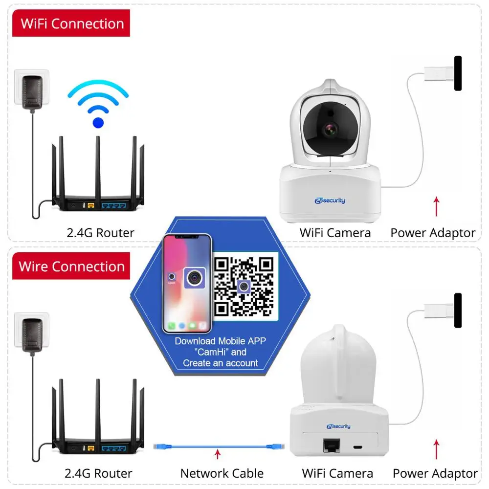 Убедитесь, что ваши мобильные устройства правильно подключены к сети (Wi-Fi). Загрузите бесплатное приложение путем поиска «Camhi» или «CamHipro» в «Google Play Store» «app Store» или сканирования qr-кода на посылка камеры.