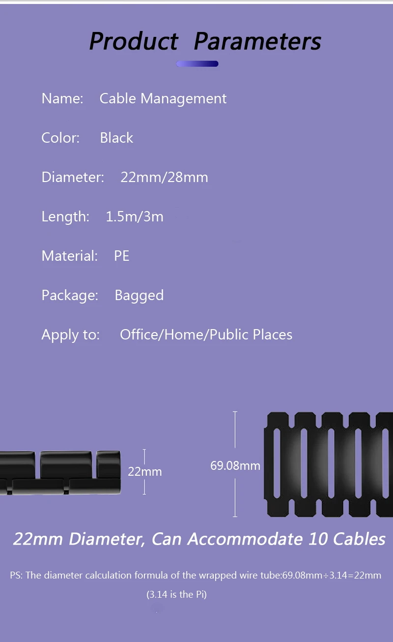 Особенности: Гибкая и многоразовому использованию. Можно легко отрезать до нужной вам длины. Разработан с помощью ЗИП-ап решения управляет и скрывает кабели, обеспечивая легкий доступ. Предотвращает появление пыли вокруг шнуров и проводов. Отлично подходит для использования нескольких кабелей в одном управляемом пачке. Простой в использовании, просто соберите кабели вместе, оберните их вокруг и на молнии, идеально подходит для домашнего и офисного использования. Идеально подходит для организации и защиты проводки. Идеально подходит для хранения шнуров, расположенных за телевизором и компьютерным монитором. Параметры: Цвет: черный Размеры: 22 мм * 1,5 м, 22 мм * 3 м, 28 мм * 1,5 м, 28 мм * 3 м (опционально) Количество: 1 шт. Фитинги: компьютерный кабель, автомобильный кабель или другое механическое оборудование. Бытовая, строительная промышленность, электронная промышленность, сборка кабелей и проводов, Упаковка и доставка, уличная деятельность. Посылка включает в себя 1 х спиральная трубка для обертывания 1 x зажим