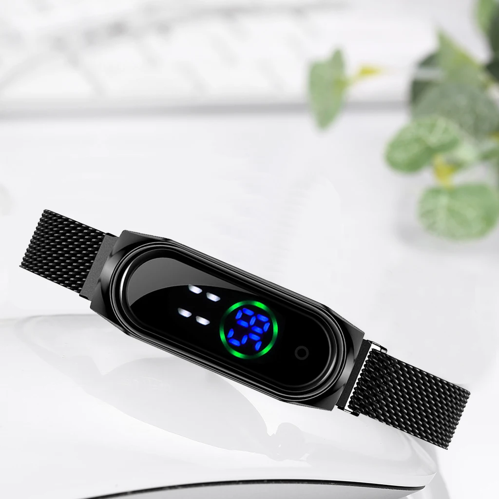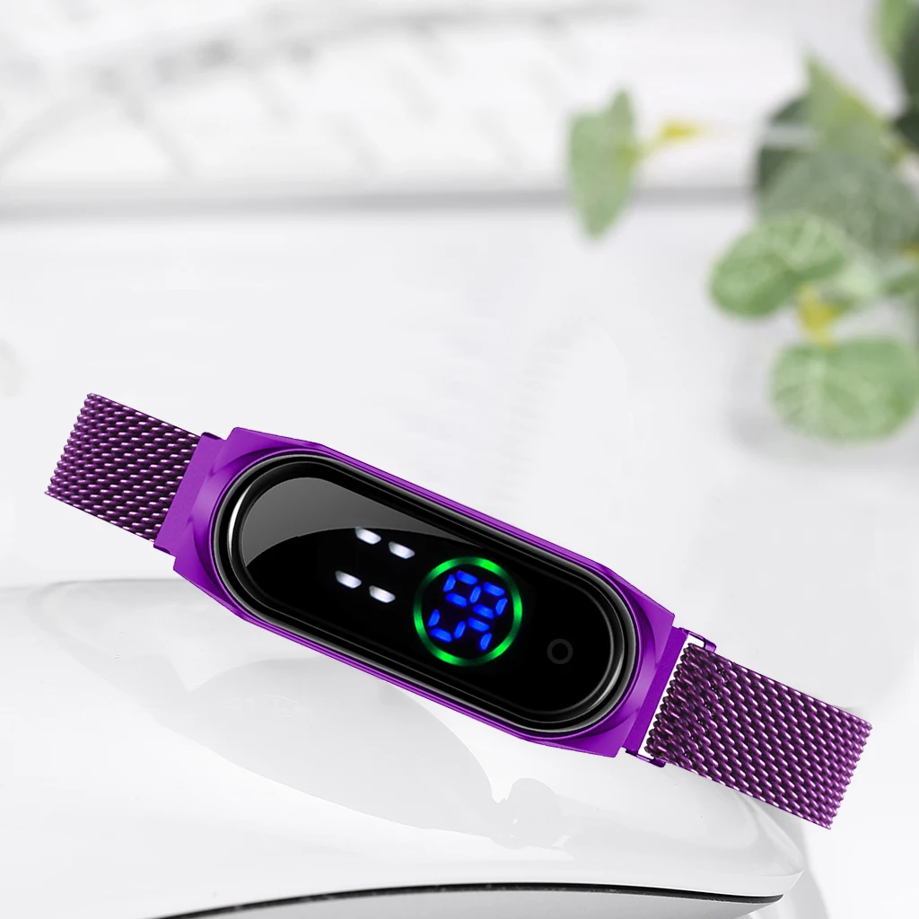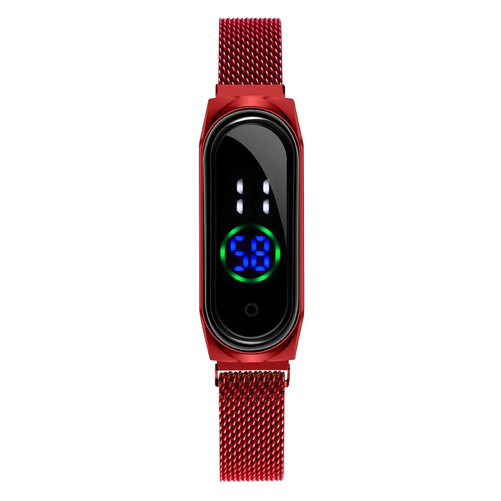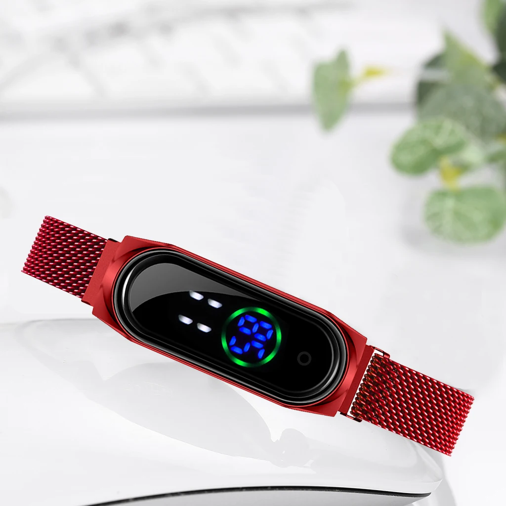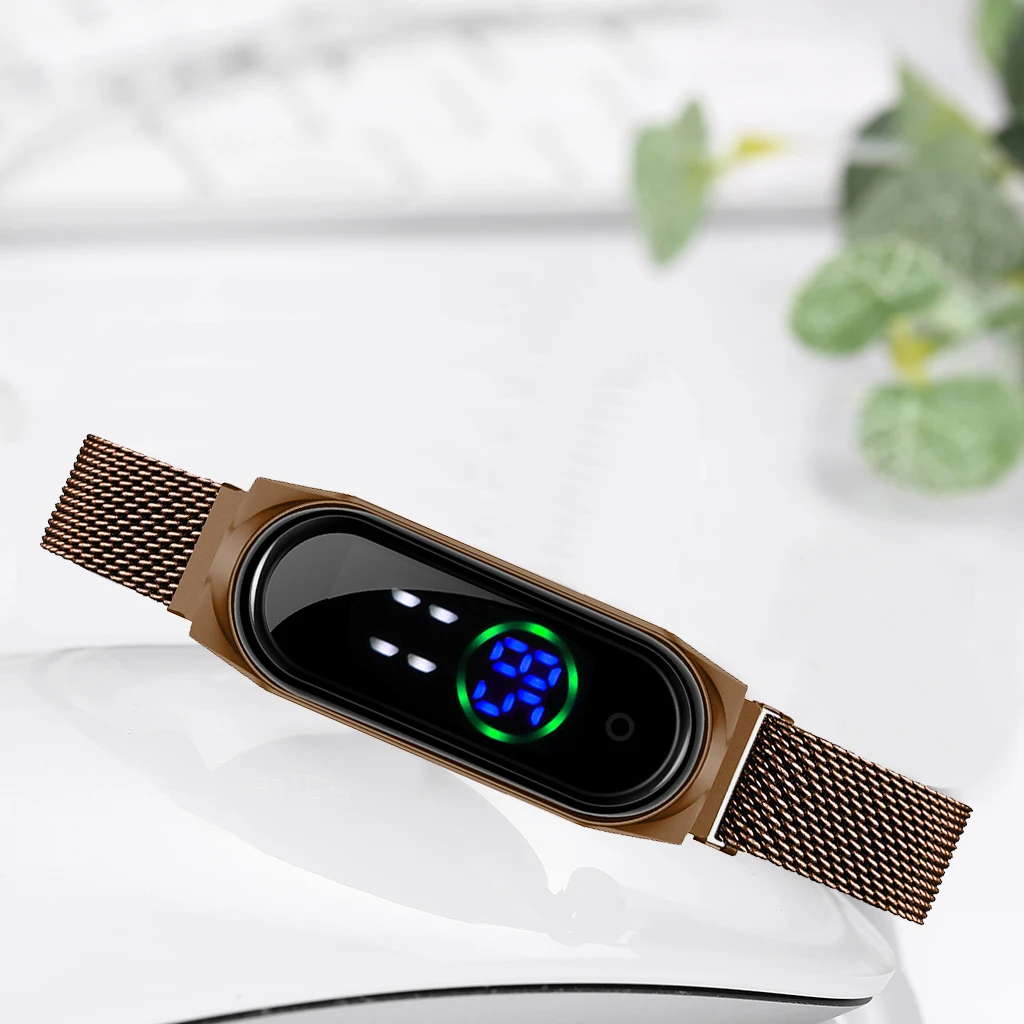 Женские часы, женские светодиодные часы с сенсорным экраном, розовое золото, магнитный сетчатый ремень, электронные часы, цифровые наручные часы, Relogio Feminino