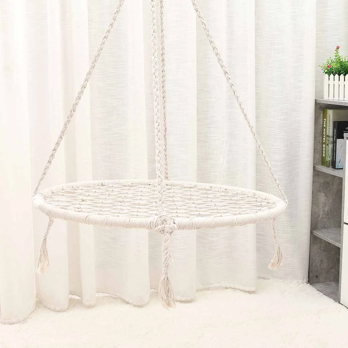 ● Безопасный-железный каркас, удобный и безопасный для детей. Изготовлен с металлической рамой, которая надежно закреплена в хлопковой веревке для стабильности и безопасности пользователя.